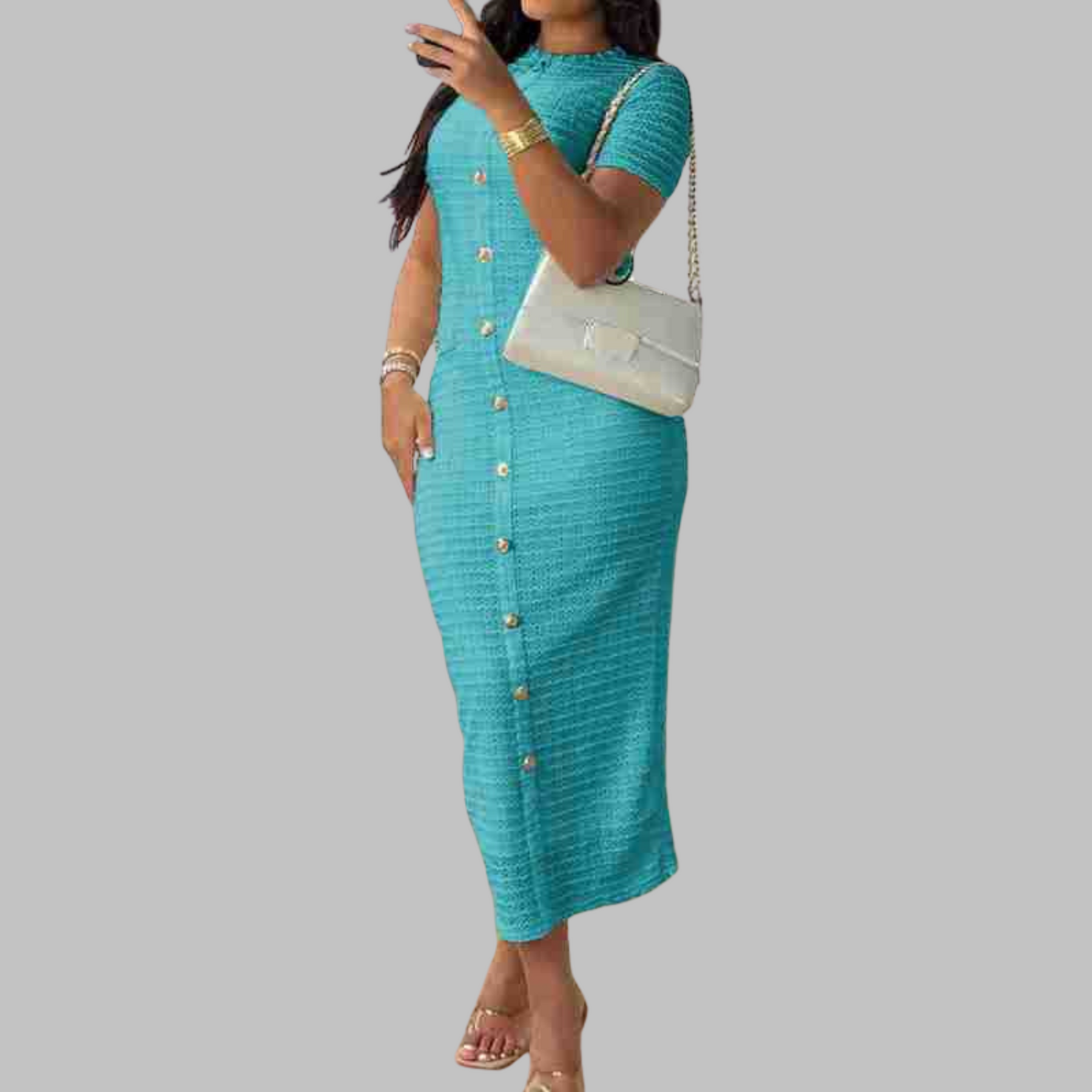 Introducing the REGAN™ – Elegant Round Neck Fake Button Dress, a timeless piece that beautifully balances classic charm with modern flair. Crafted for the woman who appreciates subtle details, this dress transitions seamlessly from day to evening wear. With its graceful silhouette and understated elegance.